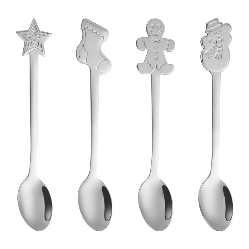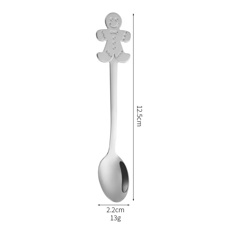 :Cartoon Design Christmas Spoon Gift Set – Stainless Steel Polished Dessert & Coffee Spoons for Holiday Gifting (Gold/Silver)